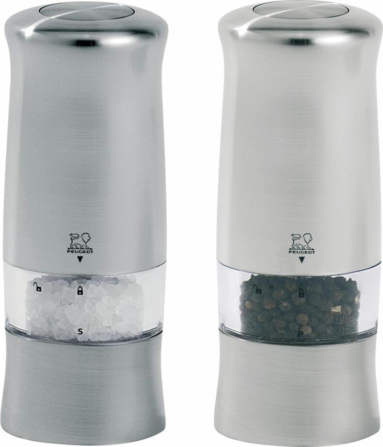 Peugeot Zeli Moulin à sel / à poivre électrique, set de 2, Moulin à sel Poivre Moulin ABS aspect inox 14 cm
