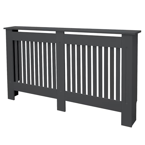 ECD Germany Cache-Radiateur en Style Campagnard 78x19x82 cm en MDF Anthracite Couverture Décorative Robuste Murale Meuble de Rangement Design Traditionnel Habillage de Radiateur pour Salon Chambre