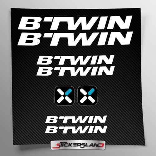 Kit autocollants compatibles avec châssis VTT Mountainbike et casque | Decalcomanies pour vélos écrits logos | Stickersland® - Btwn (Blanc brillant)