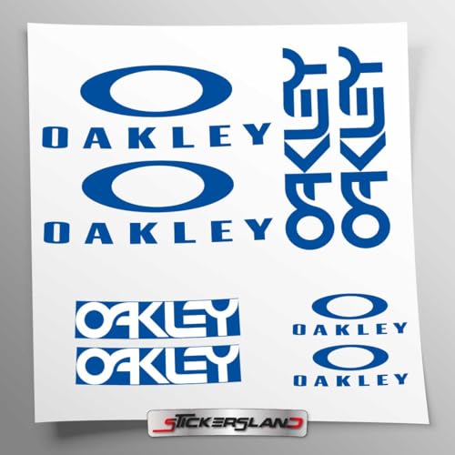 Kit autocollants compatibles avec châssis VTT Mountainbike et casque | Decalcomanies pour vélo écrits logos | Stickersland® - Oakle (Bleu brillant)