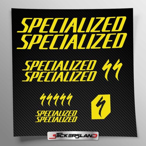 Kit autocollants compatibles avec châssis VTT Mountainbike et casque | Decalcomanies pour vélos écrits logos | Stickersland® (Jaune Brillant)