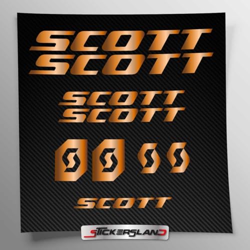 Kit autocollants compatibles avec châssis VTT Mountainbike et casque | Decalcomanies pour vélos écrits logos | Stickersland® - Scot (Cuivre métallique brillant)