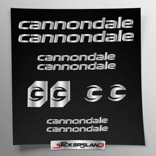 Kit autocollants compatibles avec châssis VTT Mountainbike et casque | Decalcomanies pour vélos écrits logos | Stickersland® - Cannondal V2 (argent brillant métallisé)