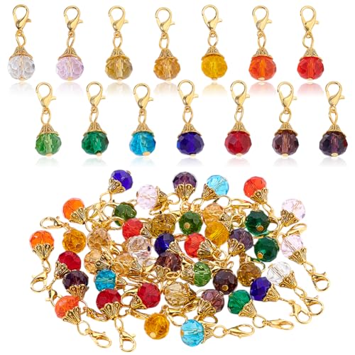 AHANDMAKER Lot de 56 breloques en verre à facettes colorées faites à la main avec fermoir mousqueton doré pour porte-clés, fabrication de bijoux, artisanat, décoration de sac à main, 28 mm