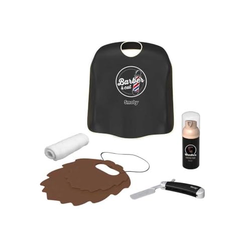 Smoby - Barber & Cut - Première Barbe - Jouet d'Imitation Barbier - 5 Accessoires - Barbe, Cape en Tissu, Coupe Chou, Flacon de Mousse à Raser Factice et Serviette - A Partir de 3 Ans