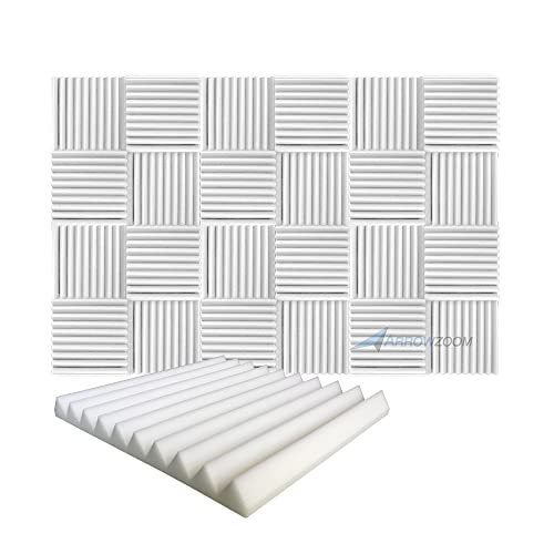 Arrowzoom 24 Panneaux de Mousse Acoustique 25 X 25 X 5cm, Haute Densité Ignifugés, Panneaux Insonorisants Anti-Bruit pour Studio d’Enregistrement, Salle de Cinéma Maison DD1134 (PERLE BLANCHE)