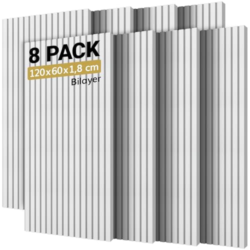 Rdutuok Lot de 4 Grands Panneau Acoustique Mural,120x60x0.9 cm Mousse Acoustique Auto-adhésifs pour la Décoration Mur/Porte/Plafond et le Traitement Acoustique, Insonorisation Phonique Mur(Blanc)