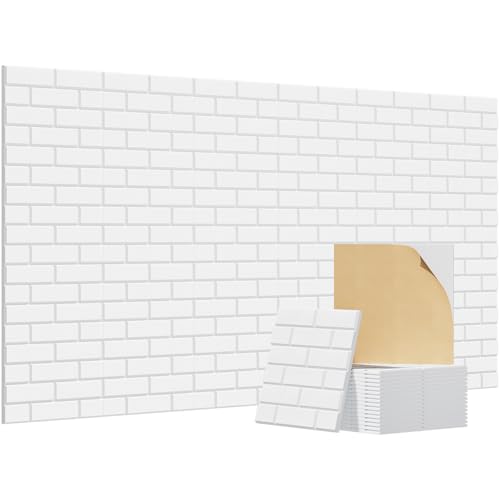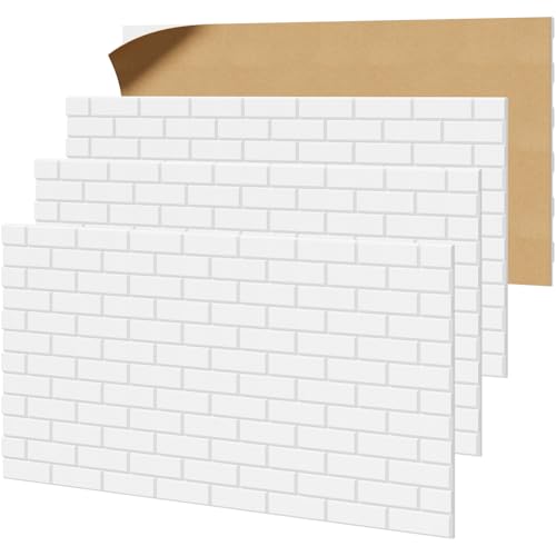 TONOR Lot de 4 Panneaux Acoustiques en Forme de Brique, 120 x 60 x 0,9 cm Mousse Acoustique Autocollante, Panneau Mural décoratif pour Salons, Chambres Et Bureaux, Blanc