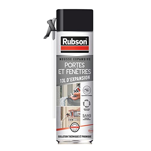 Rubson Mousse Expansive Isole Portes et Fenêtres, Mousse pour isolation acoustique et thermique des cadres de portes et de fenêtres, Mousse tous sens blanche 500 ml, Blanc