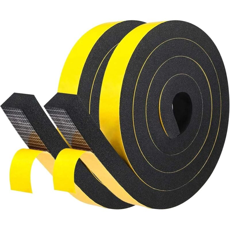 Ruban adhésif épais en mousse 25 mm (l) x 20 mm (ép.) noir pour joint d'étanchéité, pour montant de porte, cadre de porte d'entrée, bande isolante en