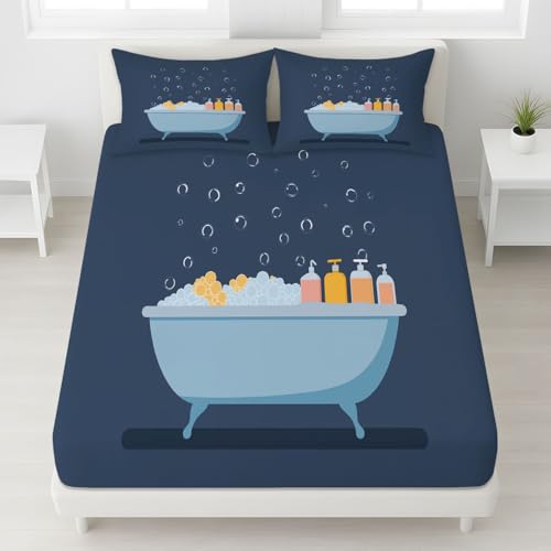 Drap-Housse imprimé, en 160 x 200 cm, avec imprimé Bain Mousse Détente, pour Matelas Sombre, pour Univers Dessin, Drap-Housse Microfibre avec taies, pour la Maison, pour Chambre d'amis