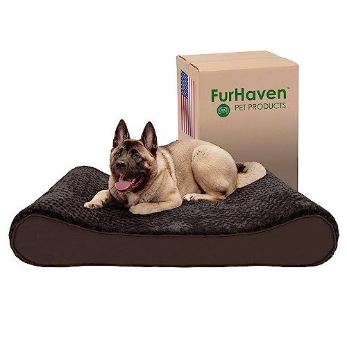 FurHaven Lit pour Chien en Mousse à mémoire de Forme pour Grands Chiens avec Housse Amovible Lavable, pour Chiens pesant jusqu'à 68 kg – Matelas Ultra Moelleux en Fausse Fourrure et Daim – Chocolat,