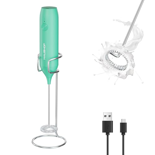 HAUSHOF Mousseur à Lait Électrique, Mousseur de Lait Portable avec Support, Rechargeable via USB, pour Café, Latte, Cappuccino, Matcha, Vert