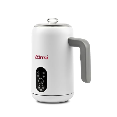 Girmi ML53 Mousseur à lait, 500 W, capacité 300 ml, arrêt automatique, 4 fonctions, lait chaud, mousse froide, chaude et dense, base d'appui froide, commandes tactiles, blanc