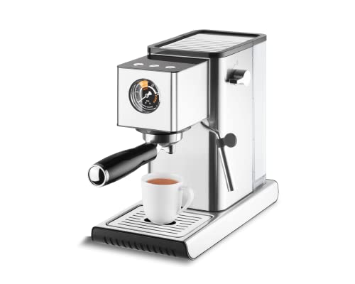 Salter Machine à expresso manuelle avec mousseur à lait, compatible avec café moulu, pompe à pression italienne à 15 barres, réservoir d'eau amovible de 1,6 l, cuillère doseuse,