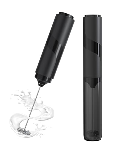 mousseur à lait électrique, fonctionne à piles mini fouet cuisine mousseur a lait, petit mixeur, milk frother melangeur puissant pour matcha, cappuccino, chocolat chaud, agitateur café (Noir Aa)