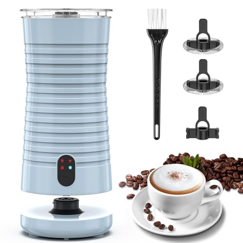 Morpilot Mousseur à Lait Électrique 4 en 1 à Mousse Chaude et Froide et Chauffe-lait, Emulsionneur Automatique 400W 240ml pour Cappuccino Macchiato Latte, Bleu
