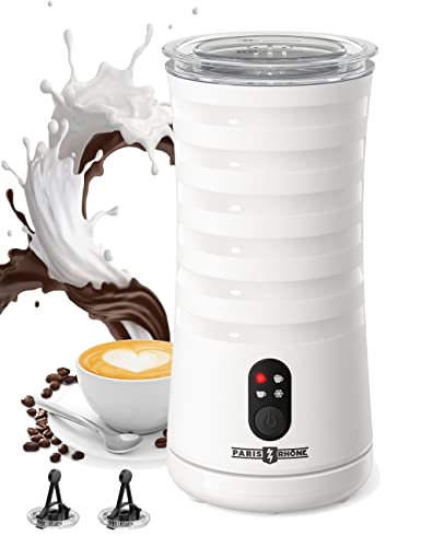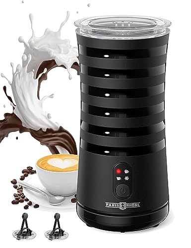 PARIS RHÔNE Mousseur à lait électrique 4 en 1 pour mousse de lait chaude et froide, lait chaud, antidérapant, forme adhérente, arrêt automatique