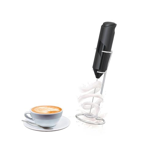 cilio ESPERTO Mousseur à lait | Acier inoxydable | Avec support en acier inoxydable | Mousseur électrique pour mélanger | Mousse de lait, cacao, milkshake | Fonctionne avec piles | Boissons chaudes et