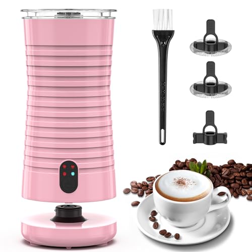 Morpilot Mousseur à Lait Électrique 4 en 1 à Mousse Chaude et Froide et Chauffe-lait, Emulsionneur Automatique 400W 240ml pour Cappuccino Macchiato Latte, Rose