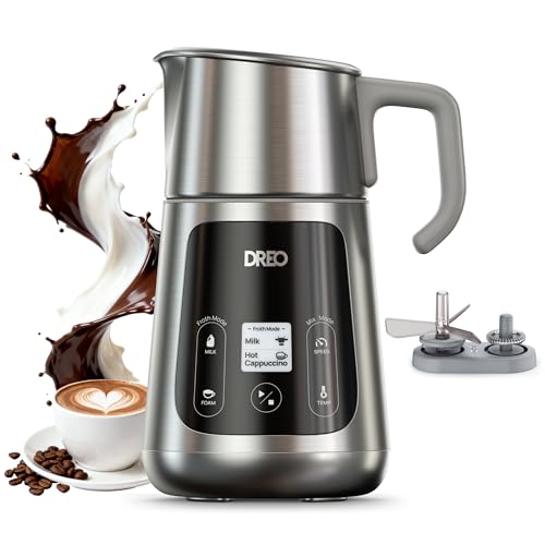 Dreo Mousseur à Lait Tout-en-un, Créateur de Mousse Automatique pour Micro-mousse de Niveau Latte Art et Café Chaud/Froid, Chauffe-lait Électrique de 27oz/800ml avec plus de 30 Boissons