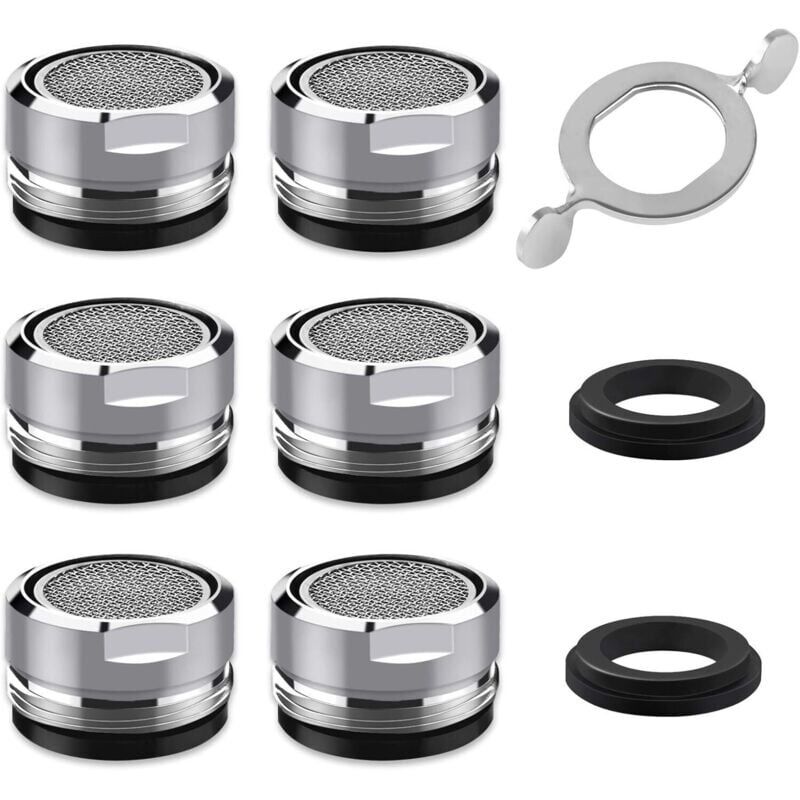 Mousseur Robinet M24, 6 Pièces Aerateur Robinet Economie Eau Avec Filtre en Acier Inoxydable et ABS, comprendre 6 joints et 1 clé à Mousseur chromée