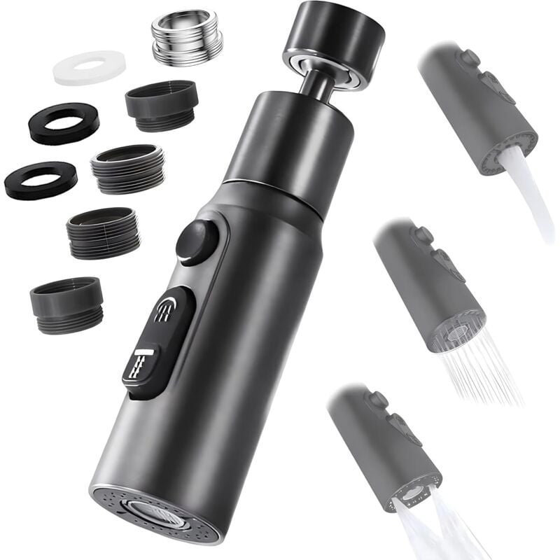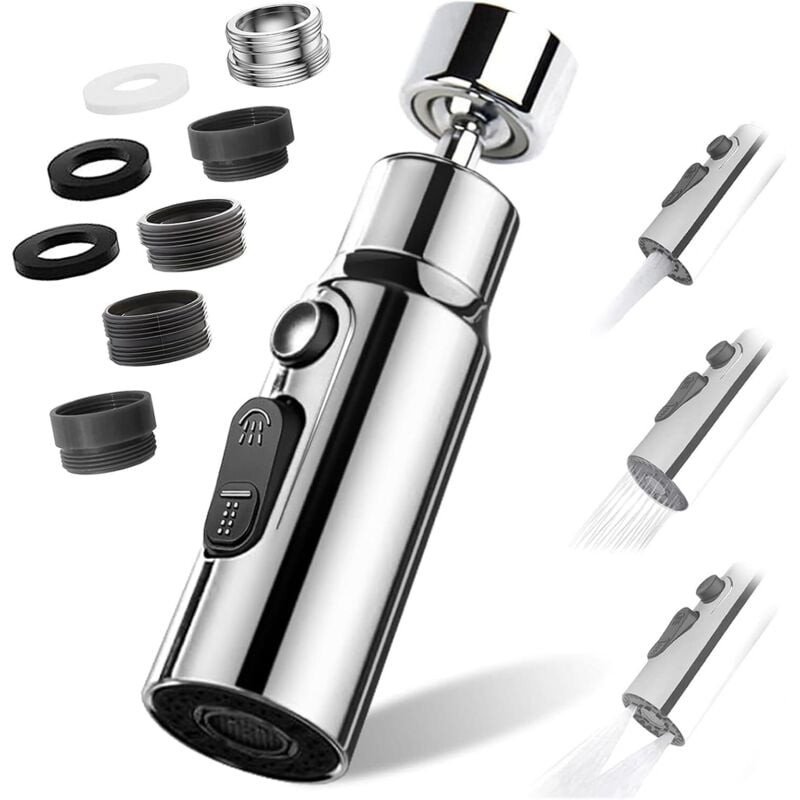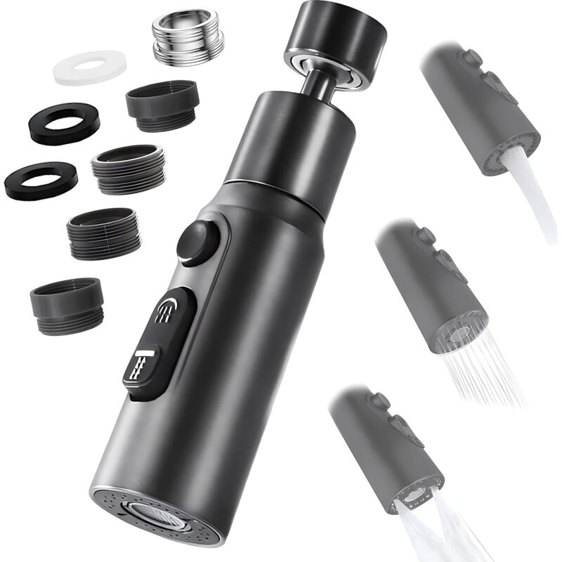 Aérateur de Robinet Pivotant à 360°, Embout Robinet Cuisine avec 3 Modes, Douchette Mousseur Robinet Economie Eau, Adaptateur de Rallonge de TêTe de