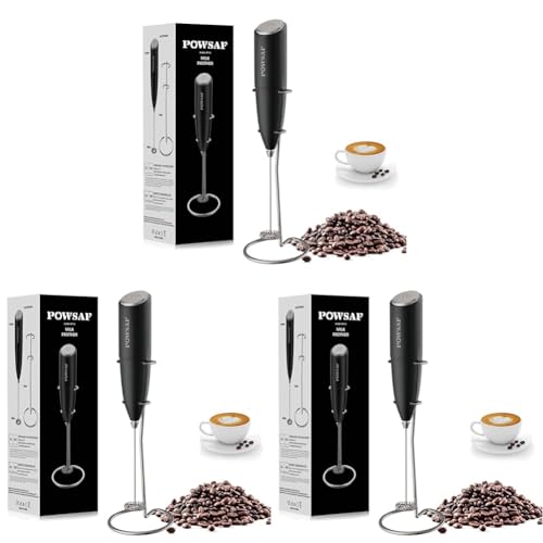 POWSAF Mousseur à Lait, Fouet Électrique avec Support, Emulsionneur à Lait, 13000 Tr/min, Fouet Mini Mixeur pour Café, Latte, Cappuccino, Matcha, Noir (Lot de 3)