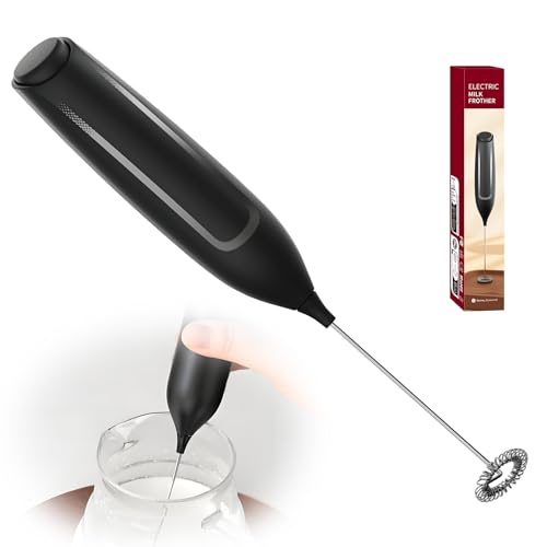 SIMPLETASTE Mousseur à Lait Électrique pour Cappuccino, Latte, Mélangeur de Boissons à Piles avec Fouet et Support en Acier Inoxydable