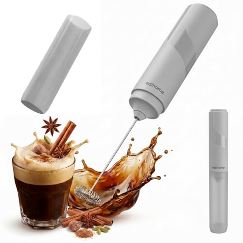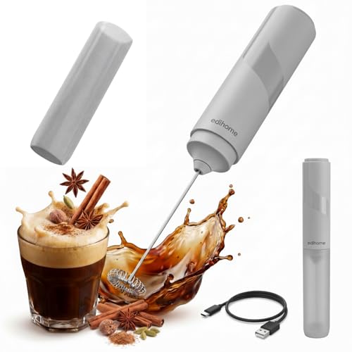 edihome, Mousseur à Lait Électrique Rechargeable, Mini Fouet Électrique pour Café, Mousseur de Lait pour Cappuccino Latte, Milk Frother Portable Rapide et Silencieux (Piles remplaçables, Gris)