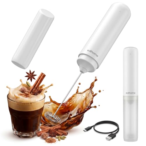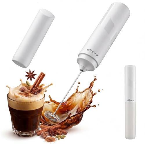 edihome, Mousseur à Lait Électrique Rechargeable, Mini Fouet Électrique pour Café, Mousseur de Lait pour Cappuccino Latte, Milk Frother Portable Rapide et Silencieux (Piles remplaçables, Blanc)