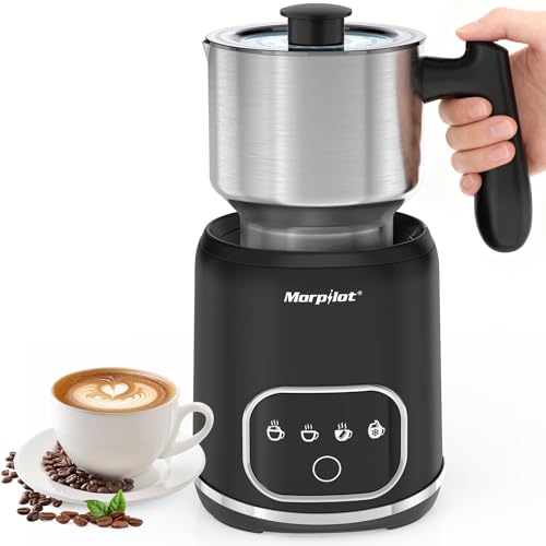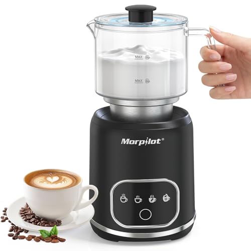 Morpilot Mousseur à Lait Électrique 4 EN 1, 130-600ml 550W pour Chaud et Froid, Chauffe-lait, Verre Visuel, Design Latte-Art pour Cappuccino Macchiato