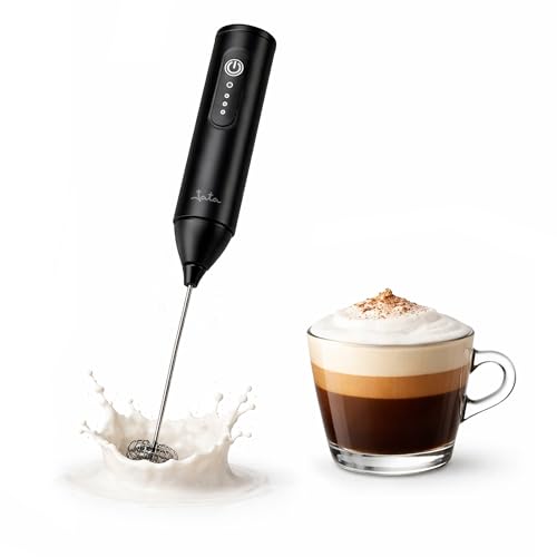 JATA JEES5504 Mousseur à lait électrique à main rechargeable USB-C, fouet à lait avec 3 vitesses, mousse pour café, cappuccino et latte, tige en acier inoxydable, batterie au lithium