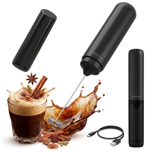 edihome, Mousseur à Lait Électrique Rechargeable, Mini Fouet Électrique pour Café, Mousseur de Lait pour Cappuccino Latte, Milk Frother Portable Rapide et Silencieux (Piles remplaçables, Noir)