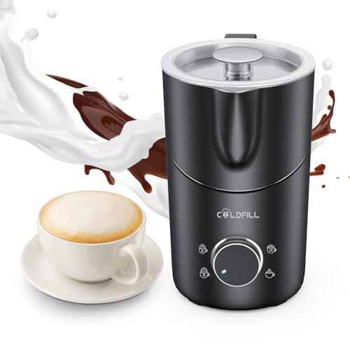 COLDFILL Mousseur à Lait éLectrique, 8 en1 Vec Froide et Chaude, Anti-BrûLures, Passe Au Lave-Vaisselle, Pour Macchiato, Capuccino, Latte, Lait Design, Chocolat, Inox
