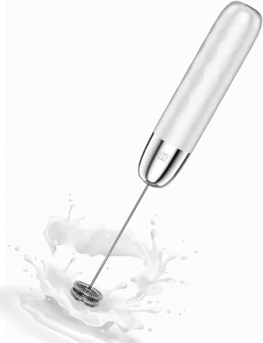 VINATO Mousseur à lait électrique, Mousseur à lait à piles avec Fouet en Acier Inoxydable, Mini-mousseur à café pour le café, le Latte, le Cappuccino, le Matcha et le Chocolat Chaud, Blanc