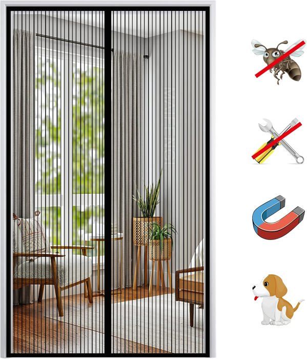 Moustiquaire - Porte Magnétique - 120 x 220 cm - Installation sans perçage - Résistante aux insectes
