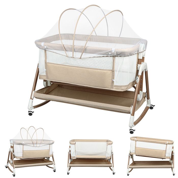 Beige Berceau Cododo pour bébé: Lit de chevet avec moustiquaire Berceau à bascule Lit dappoint avec hauteur réglable Mobile