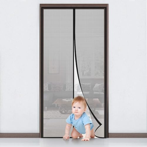MYCARBON Moustiquaire Porte-Fenêtre Magnétique 95x210cm Maille Ultra Fine Fermeture Magnétique Rideau Moustiquaire Aimantée Porte d’Intérieur Anti Mouches Anti Insectes avec Ruban Adhésif, Noir