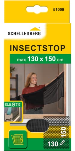 Schellenberg 51009 Moustiquaire élastique pour fenêtres anti insectes recoupable avec ruban auto-aggripant et cutter, 130 x 150 cm, Anthracite
