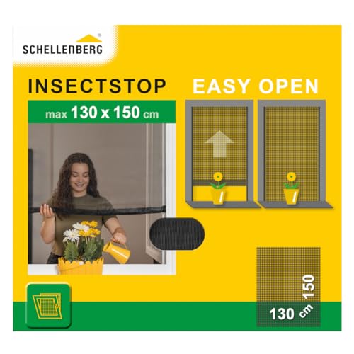 Schellenberg 70474 Moustiquaire fenetre Easy Open avec toile polyester 130 x 150 cm, moustiquaire enroulable pour une ouverture facile, accessoires de montage inclus, anthracite
