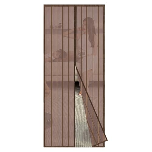 Sekey 90 x210 cm Moustiquaire pour Portes, Avancée Rideau Magnétique Anti-insectes pour Porte de Balcon, porte Cave, Porte de Terrasse, Montage Facile à Coller, Kit d'installation Complet, Marrón