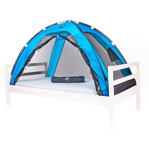 Deryan Tente de lit - Moustiquaire Double - Tente moustiquaire - Compact et léger - 200x90x110cm - Moustiquaire lit & moustiquaire Voyage avec Sac de Transport Bleu