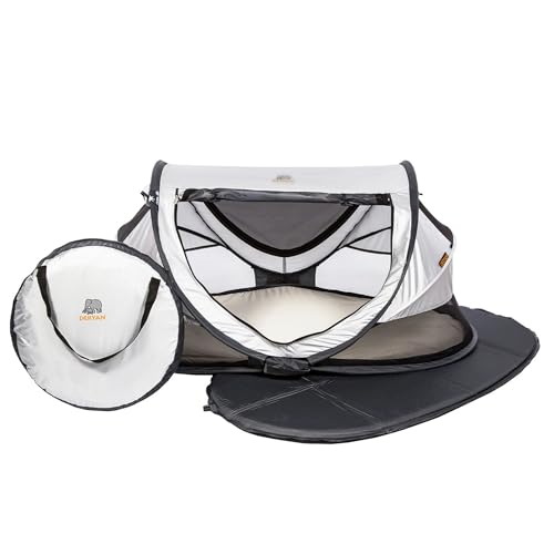 Deryan Lit de Voyage pour Petits Enfants avec Matelas - De la Naissance Jusqu'à 4,5 Ans - Tente Bébé Pop-Up Montée en 2 Secondes - Moustiquaire et Sac de Voyage Inclus - 136x84x62cm (Argent)
