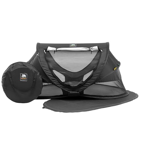Deryan Lit de Voyage pour Petits Enfants avec Matelas - De la Naissance Jusqu'à 4,5 Ans - Tente Bébé Pop-Up Montée en 2 Secondes - Moustiquaire et Sac de Voyage Inclus - 136x84x62cm (Noir)