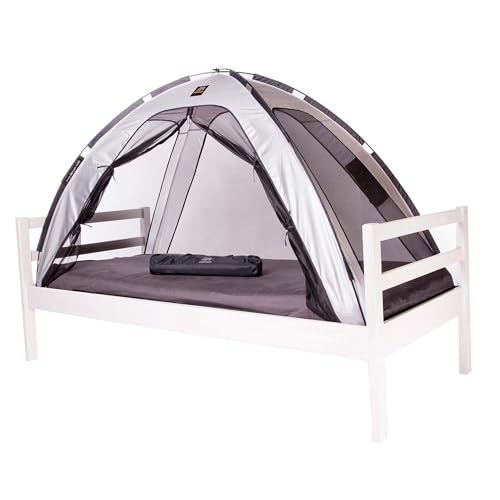 Deryan Tente de Lit - Moustiquaire Lit Double - Tente Lit - Compact et Léger - 200x90x110cm - Moustiquaire Lit & Moustiquaire Voyage avec Sac de Transport - Argent