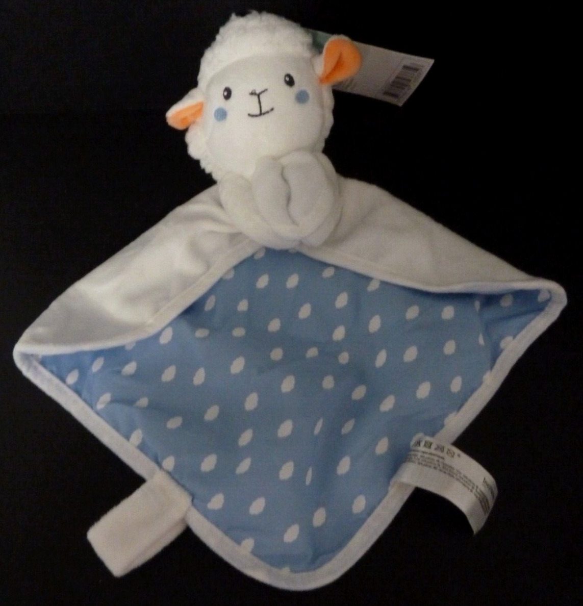 Doudou Plat Mouton agneau blanc bleu orange pois Mouchoir Auchan Baby