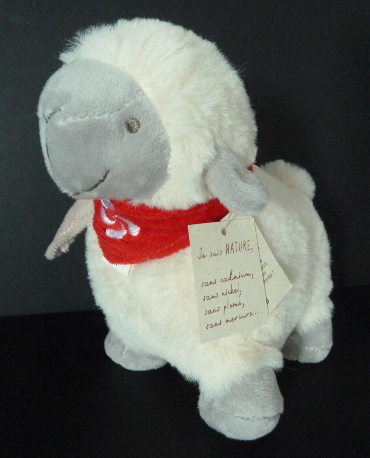 S. DOUDOU PELUCHE DOUCET MOUTON blanc gris bandana rouge 100% NEUF*