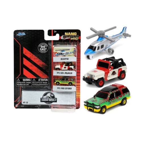 JURASSIC PARK 3 PACK NANO CARS Cm 3 Jada Toys Movie -F- Nouveau modèle