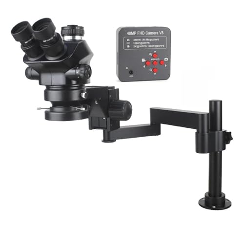 Microscope Trinoculaire Stéréo 48mp 4K 1080P, Caméra Vidéo HDMI USB, Adaptateur CTV for La Réparation De Soudure PCB Puissant Caractéristiques(7x-45x 0.35X CTV)